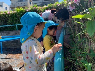 園児一人ひとりが全世界の中心。子どもたちが将来、自分らしく幸せに生きていく力の基礎(非認知能力の根っこ)を育めるよう、乳児、1〜3歳未満児の発達において特に大切な「愛着形成」「自己肯定感」「模倣力」「自我の芽生え」「表現」「身体・健康」「食のはじまり」に、一つひとつ丁寧に寄り添う保育を大切にしています。