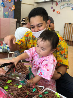 小さいお友だちは、輪を引っ張り抜くことが楽しいお年頃!