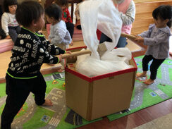 今日はみんなで鏡餅を作る為に、一生懸命お餅つきをしましたよ✨