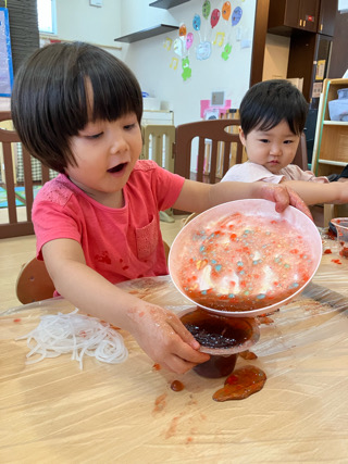今年の夏も水遊びとともに、たくさんの感触遊びをしました✨