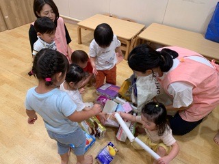 子どもたちからたくさんアイデアが出てきた廃材遊びでした!また遊ぼうね〜!