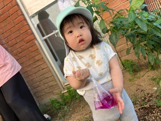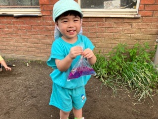 0歳のお友だちは袋に入れて触ったり