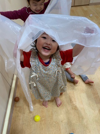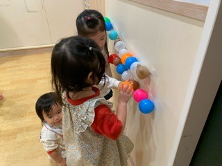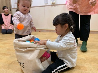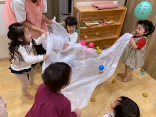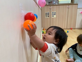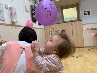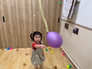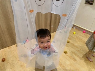 今日はいつも楽しんでいるカラーボール、風船とおばけを組み合わせて遊びました〜!