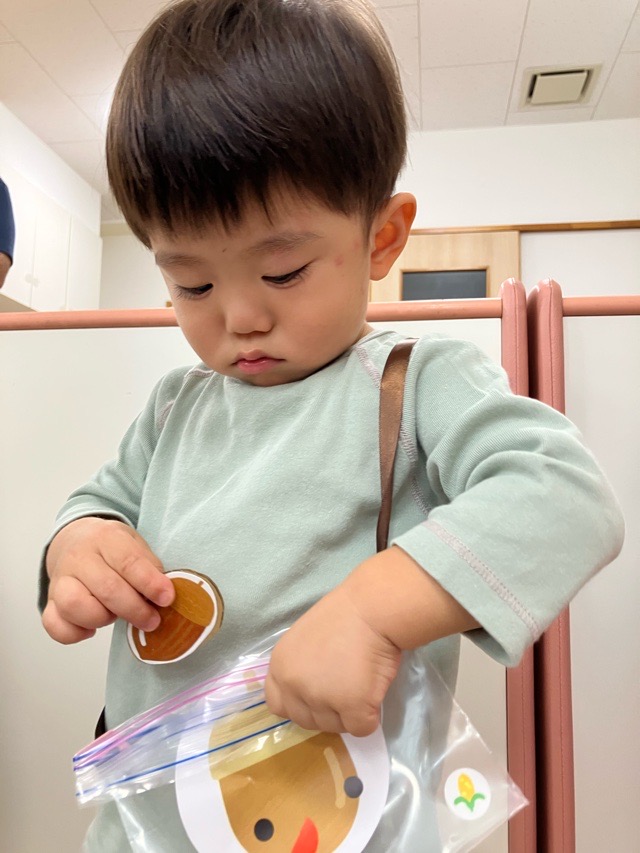 今日はあいにくの雨でしたが、お部屋でどんぐり探しをして遊びました!