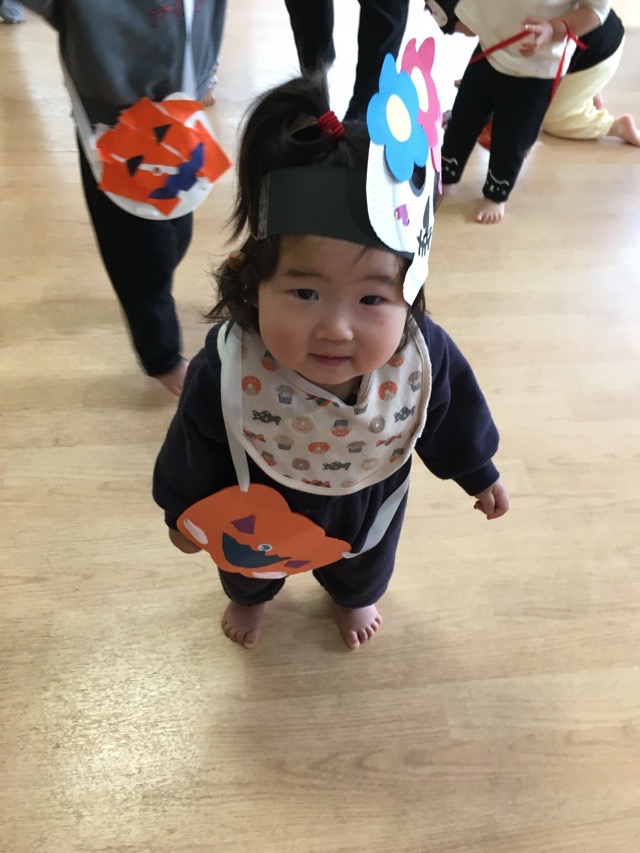 「トリックオアトリート」と隣の保育園にお菓子を貰いに行きましたよ💕