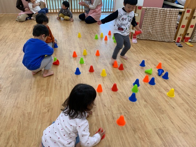 ミニコーンを集めるおたから集めゲームをしたり、マットからジャンプしたり…たくさん体を動かして元気いっぱいの子どもたちでした🎈