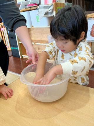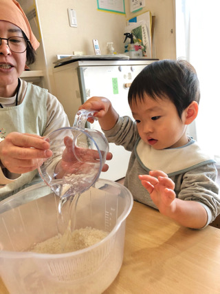 ドキドキしながらも、初めてのお米研ぎを経験しました🍚