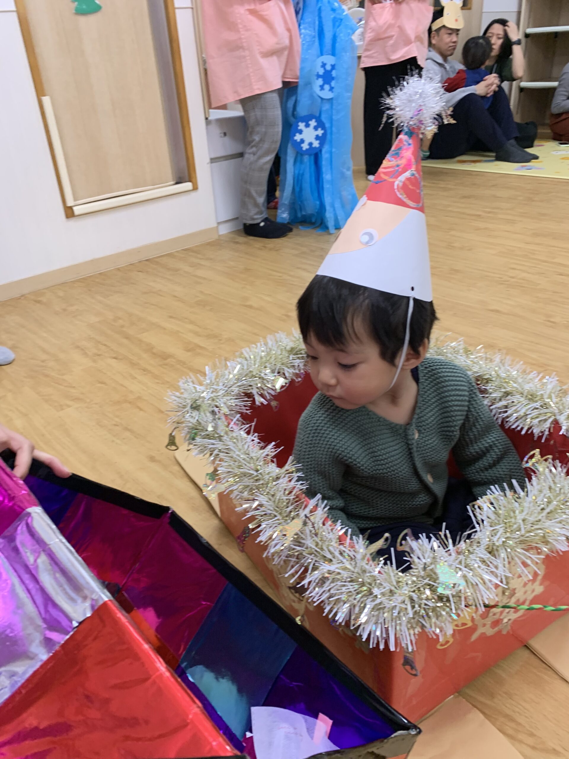 キラキラのソリをパパやママに引いてもらって、プレゼント🎁を探しにも行きました。