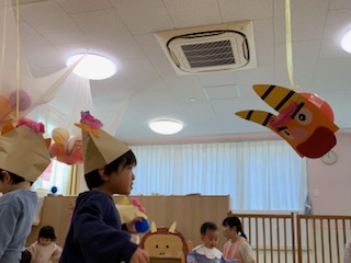 保育園でも、ボールをお豆の代わりにして、豆まきをしましたよ。