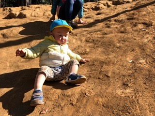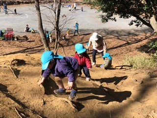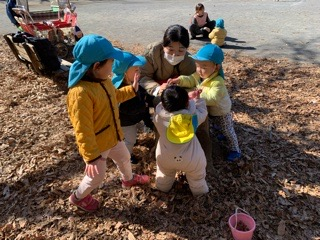 お尻も、足も、土ぼこりになりながらも、 たくさん身体を動かし 全身で「たのしい!!」と感じている様子が見られます。 保護者のみなさまには、お洋服の汚れ物が増えるなかで