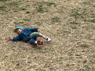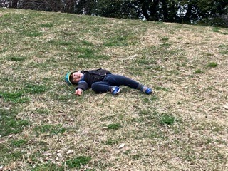 芝生の斜面をごろごろ転がったりして