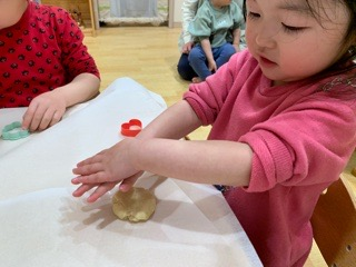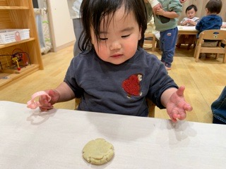 👧🏻「わたしもやる!」と先生と一緒に綺麗な丸いクッキーができました!✨✨
