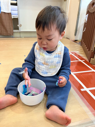 この日はあいにくの雨☔️ お花紙を使ってあそびましたよ! びりびり上手にできるかな〜