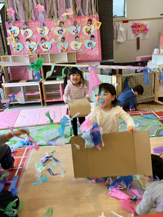 すると、すると、 ふわわわ〜ん🌪️ すごい風で、お花紙が舞い上がりましたよ✨