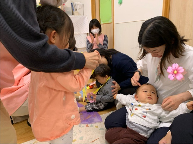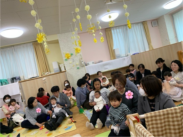 新年度がはじまり、とっても可愛いお友だちがたくさん入園してくれました🌷 はじめての場所で、ドキドキ💓でしたが… お母さんお父さんと一緒に、ふれあいあそびをすると にこにこ😊可愛い笑顔を見せてくれましたよ✨ これから、保育園で楽しいこといっぱいしようね!
