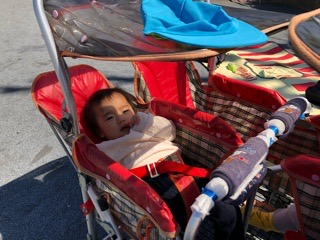 たまにお外にも💓初めてのバギーには、緊張🫨して涙してしまいましたが…