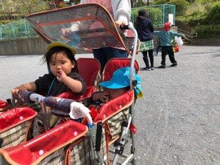 おや?😊 在園児のお友達も乗っている😂 赤ちゃんのことが気になって、ついつい自分も乗りたくなっちゃうんですね〜!