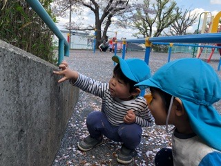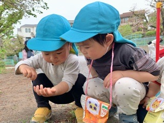ツツジの花も綺麗に咲いています!落ちてたのをひろったよ♪ 暖かくなってきてようやく大好きな虫さんが顔を出してくれ、虫探しや観察に夢中になっていますよ🥰ダンゴムシやミミズ、アリ…あとはどんな虫さんに会えるかな?毎日楽しみにしているみんなです。 今回は進級児さんたちの様子をお届けしましたが、新入園児さんたちも公園に興味津々ですよ〜🥰💓一緒にいっぱい遊ぼうね♪