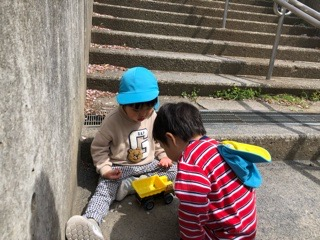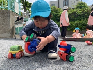 こちらはダンプカーに虫さんをのせて観察中👀✨