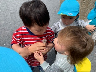 虫さんが好きなお友だちの多い青葉台園です♪ ダンゴムシを見つけて、手のひらにものせられるよ!